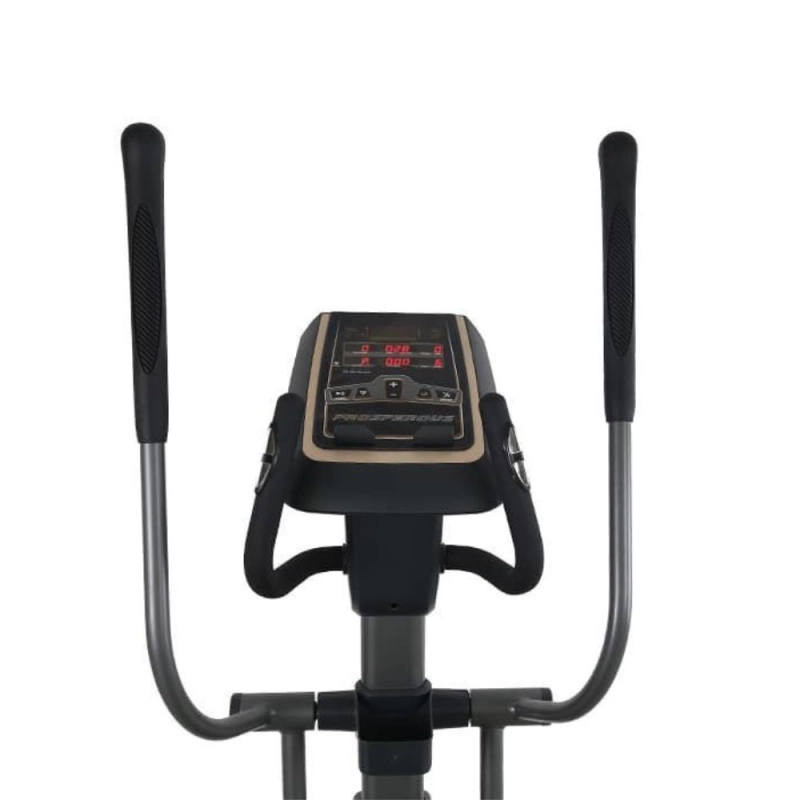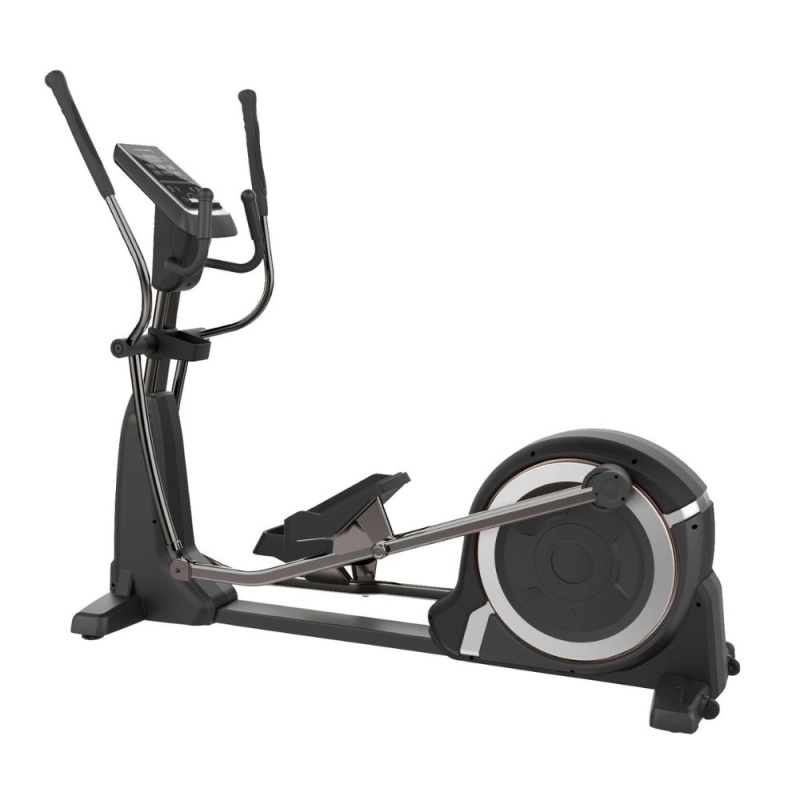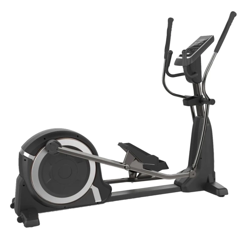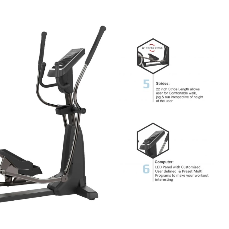 Os atletas podem treinar em ambientes fechados neste elíptico comercial fino leve, que tem uma variedade de programas integrados em diversos níveis de resistência para permitir um regime de exercícios continuamente desafiador e em constante mudança. Os usuários podem acompanhar sua frequência cardíaca, distância percorrida, calorias queimadas.